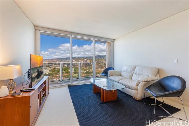 Rarely available and highly desirable “09 stack” at Moana Pacific featuring 2 bedrooms, 2 bathrooms, and 2 covered parking stalls. This high-floor West Tower residence also includes a private storage unit (approx. 87 sq. ft.) for added convenience. Enjoy sweeping panoramic views of the mountains, city, and ocean. Moana Pacific is a pet-friendly building offering resort-style amenities: oversized pool, hot tub, fitness centers, tennis courts, putting greens, driving nets, BBQ areas, party rooms, theaters, and more. The unit is in original condition but attractively priced with the bonus of a second parking stall and storage unit. Experience the best of Kakaako living just blocks from sandy beaches, Ala Moana Shopping Center, Ward Village, Waikiki, dining, and entertainment. A must-see opportunity!