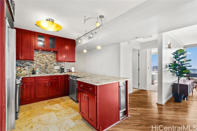 100% Hurricane insured! Moana Pacific #3507 (West Tower) delivers the ultimate luxury lifestyle at an exceptional value—complete with spirit-lifting ocean views from every room, a thoughtfully renovated kitchen, and premium side-by-side parking on the 3rd floor. This stunning 2-bedroom, 2-bath residence blends elegance and comfort with breathtaking panoramic vistas of the Pacific. Floor-to-ceiling windows illuminate the spacious interior with natural light, creating a refreshing retreat. Both bedrooms offer tranquility and awe-inspiring views, while the bonus den provides flexible space for an office, media room, or guest area. The upgraded kitchen boasts generous storage and a wine fridge for added indulgence. Enjoy two standard-size parking stalls in a prime location near the entrance. Resort-style amenities include a fitness center, tennis courts, golf putting & driving range, BBQ areas, and a private movie theater. Here, convenience meets luxury—you truly can have it all! (All new furnishings are available for sale from the stager. )