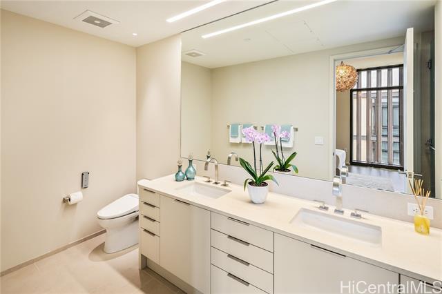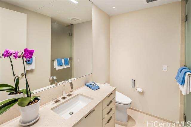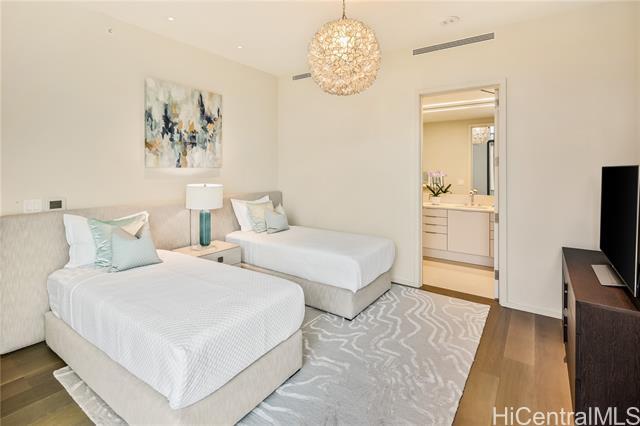 Rarely available Penthouse Sky Residence at Park Lane Ala Moana, Honolulu’s one-of-a-kind luxury condominium. Enjoy the best of Hawaii’s indoor-outdoor living with breathtaking views of ocean, rolling waves, sandy beach, and lush greens of Ala Moana Beach Park from the expansive 358 sq. ft. lanai with a built-in Wolf BBQ, seamlessly connecting to the immaculate interior with soaring 10-ft ceilings, natural light from the floor to ceiling windows, gourmet kitchen with large wine fridge. The oversized primary suite features two walk-in closets and a lavish spa-inspired bathroom. Both 2nd and 3rd bedrooms come with ensuite bathroom for comfort and privacy for all. Additional highlights include a spacious walk-in storage room located directly behind two side-by-side parking stalls conveniently near the elevator on Level 3. Resort-style amenities feature concierge and valet service, 24/7 security, pool, Jacuzzi, BBQ cabanas, playground, dog park, private dining room, owners lounge, wine room, meeting room, gym, yoga room, theater, spa with sauna, steam room, cold plunge, and private massage rooms. Secured direct elevator access to World-class Ala Moana Center’s shopping and dining.
