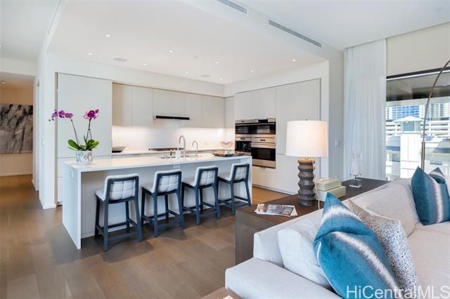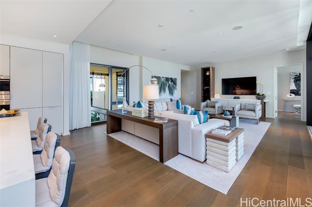 Situated fronting Ala Moana Beach Park, Park Lane is positioned as Honolulu's premier ultra-luxury boutique condominium residence. Located along the front-corner of Park Lane, this rarely available 3-bedroom plus den, 3.5-bath, 2,996 sq.ft. Island Residence features elevated interior design and curated furnishings, enhancing indoor and outdoor spaces. Pacific Ocean and verdant Park vistas deliver unforgettable scenery to your living room, kitchen, dining area, and primary bedroom suite, as well as the spacious 307 sq.ft. covered lanai. A grand primary suite includes two walk-in closets, an elegant luxury ensuite double vanity bathroom with walk-in shower room and deep soaking tub; two additional bedrooms plus a den provide flexibility. Enjoy resort amenities including Park Lane's iconic Great Lawn green space, a 75-foot lap pool, hot tub, and rain shower, fitness gym and yoga studio, private landscaped barbecue cabanas, two spas, guest suites, and more. This turn-key residence delivers an exceptional island-luxury experience for discerning buyers; welcome home to Park Lane #8604.