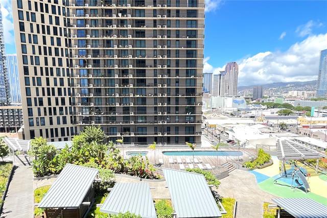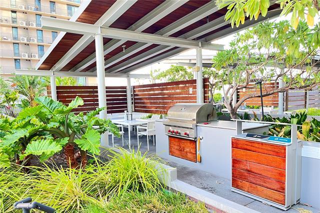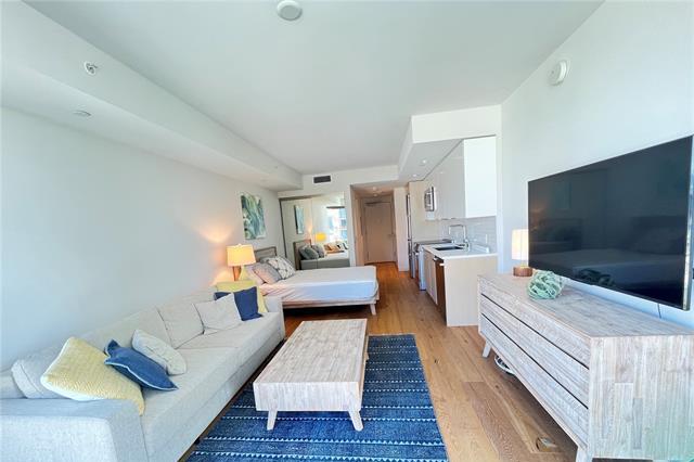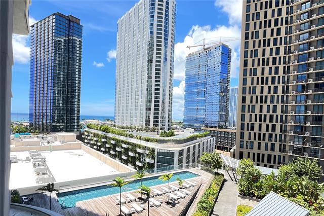 Beautiful studio unit came with storage and one parking. Located at the prime intersection of Queen Street and Kamakee Street, this condominium offers ocean views from all 466 units. Directly connected to Whole Foods Market, it features a 40th-floor rooftop terrace with panoramic ocean and sunset views, a 24-meter lap pool, a family area with a children’s playground, a leisure pool, six outdoor dining pavilions and cabanas, an outdoor workout space, an indoor gym, a yoga area, three guest suites for visiting family and friends, a steam sauna room, a private movie theater, a lounge/karaoke room for parties and events, a private dining room with a catering kitchen, storage areas for surfboards and bicycles, and a dog run. Fully finished in a modern style and move-in ready.