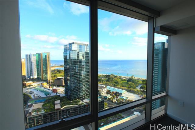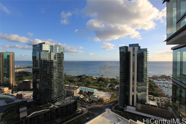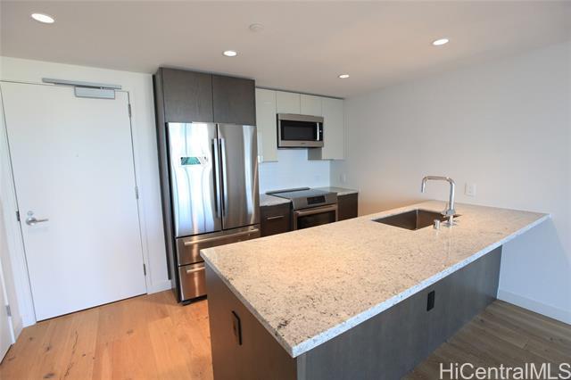 Ideal higher floor Even number stuck at luxurious Ae'o condominium, center of Ward area, connected to Wholefoods store, many nice restaurants near by. This unit has engineered wood flooring for living room, motorized window covering, deep bath tub, additional storage (23SQF, purchased at $15,000) on garage floor.