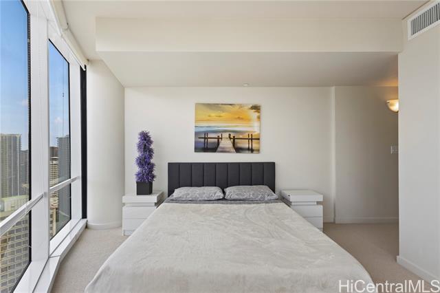 High floor, sweeping mountain to ocean views, spacious 3 bedroom, 2 bath, 2 parking unit at Moana Pacific! This clean pristine unit features nearly 180 degree views, large usable living room and dining areas, nice kitchen with stainless steel appliances, a primary suite with a private bathroom, 2 guest bedrooms with another full bathroom, multiple lanais, cool cross breezes, central AC, newer stacked washer/dryer, and 2 side by side covered parking stalls. Building amenities include a swimming pool, jacuzzi, BBQ areas, playground, tennis court, putting green, meeting rooms, movie theatre, fitness center, and more! Moana Pacific is conveniently located in the heart of Kaka'ako close to Ala Moana Shopping Center, Ala Moana Beach Park, Ward Village, Foodland Farms, with easy access to freeways, and many nearby shopping and dining options including Stage right downstairs. Currently rented until Jan 2, 2026 at $4,850/mo. This rare opportunity to get a large 3 bedroom in Kaka'ako for an affordable price won't last long. Come take a look today before it's too late!