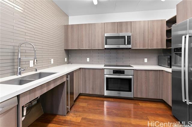 Rare Symphony Building VA Assumable Step into elevated urban living at Symphony Honolulu, one of Kaka‘ako’s most coveted luxury residences. This beautifully maintained 1-bedroom, 1-bathroom unit features floor-to-ceiling windows framing panoramic views of the city skyline and mountainside. Inside, enjoy high-end finishes including quartz countertops, Studio Becker cabinetry, and a premium GE Cafe French Door refrigerator - all curated for modern island living. Resort-style amenities include an infinity-edge pool, fitness center, movie theater, guest suites, and 24-hour concierge service. Situated in the heart of Honolulu, you're just minutes from Ward Village, Whole Foods, Ala Moana Center, and acclaimed dining and nightlife. Bonus financing opportunity - this home features a VA assumable loan, potentially allowing qualified buyers to step into favorable loan terms (subject to VA and lender approval). Modern luxury, prime location, and flexible financing - this is Honolulu living at its finest.