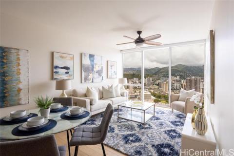 Rare Symphony Building VA Assumable Step into elevated urban living at Symphony Honolulu, one of Kaka‘ako’s most coveted luxury residences. This beautifully maintained 1-bedroom, 1-bathroom unit features floor-to-ceiling windows framing panoramic views of the city skyline and mountainside. Inside, enjoy high-end finishes including quartz countertops, Studio Becker cabinetry, and a premium GE Cafe French Door refrigerator - all curated for modern island living. Resort-style amenities include an infinity-edge pool, fitness center, movie theater, guest suites, and 24-hour concierge service. Situated in the heart of Honolulu, you're just minutes from Ward Village, Whole Foods, Ala Moana Center, and acclaimed dining and nightlife. Bonus financing opportunity - this home features a VA assumable loan, potentially allowing qualified buyers to step into favorable loan terms (subject to VA and lender approval). Modern luxury, prime location, and flexible financing - this is Honolulu living at its finest.